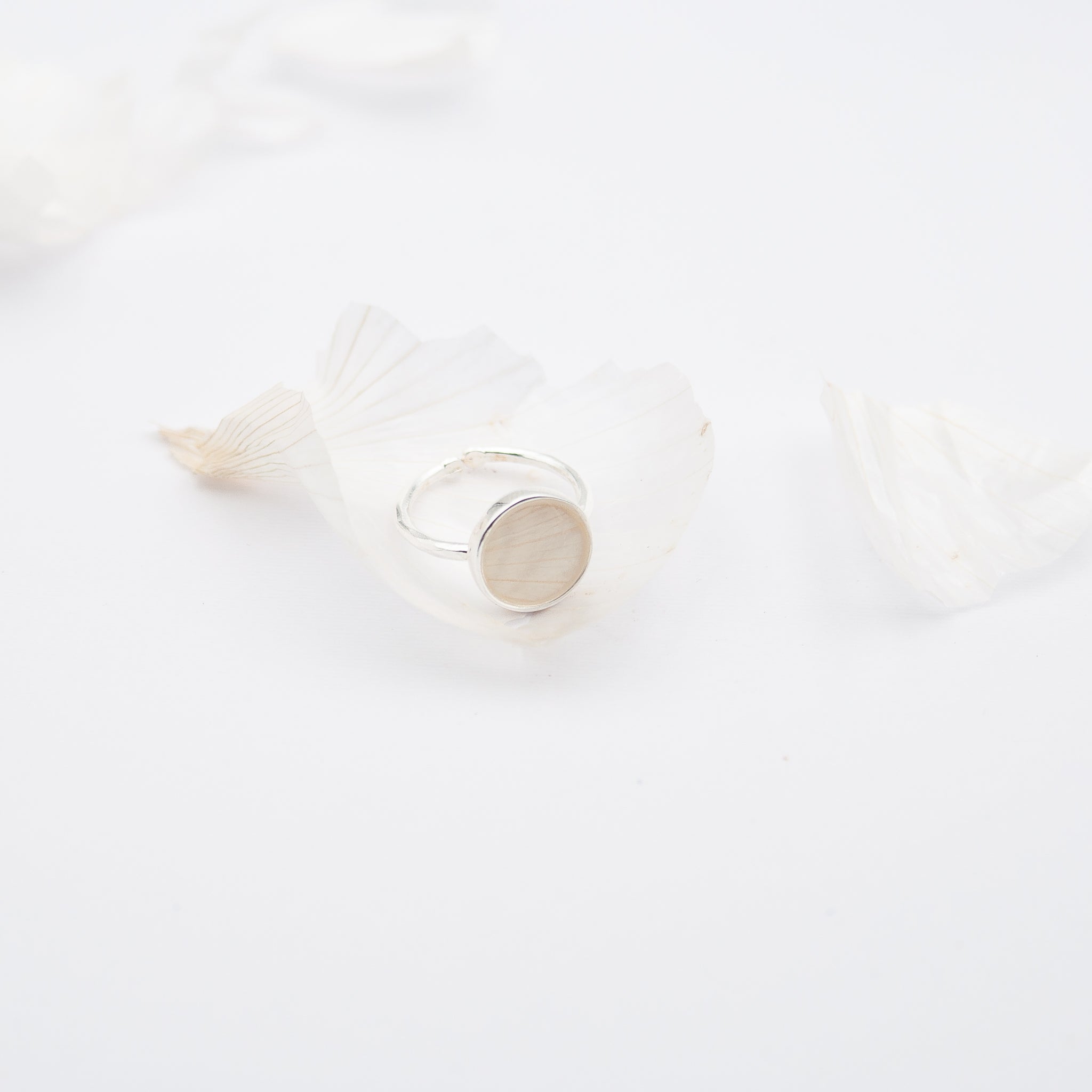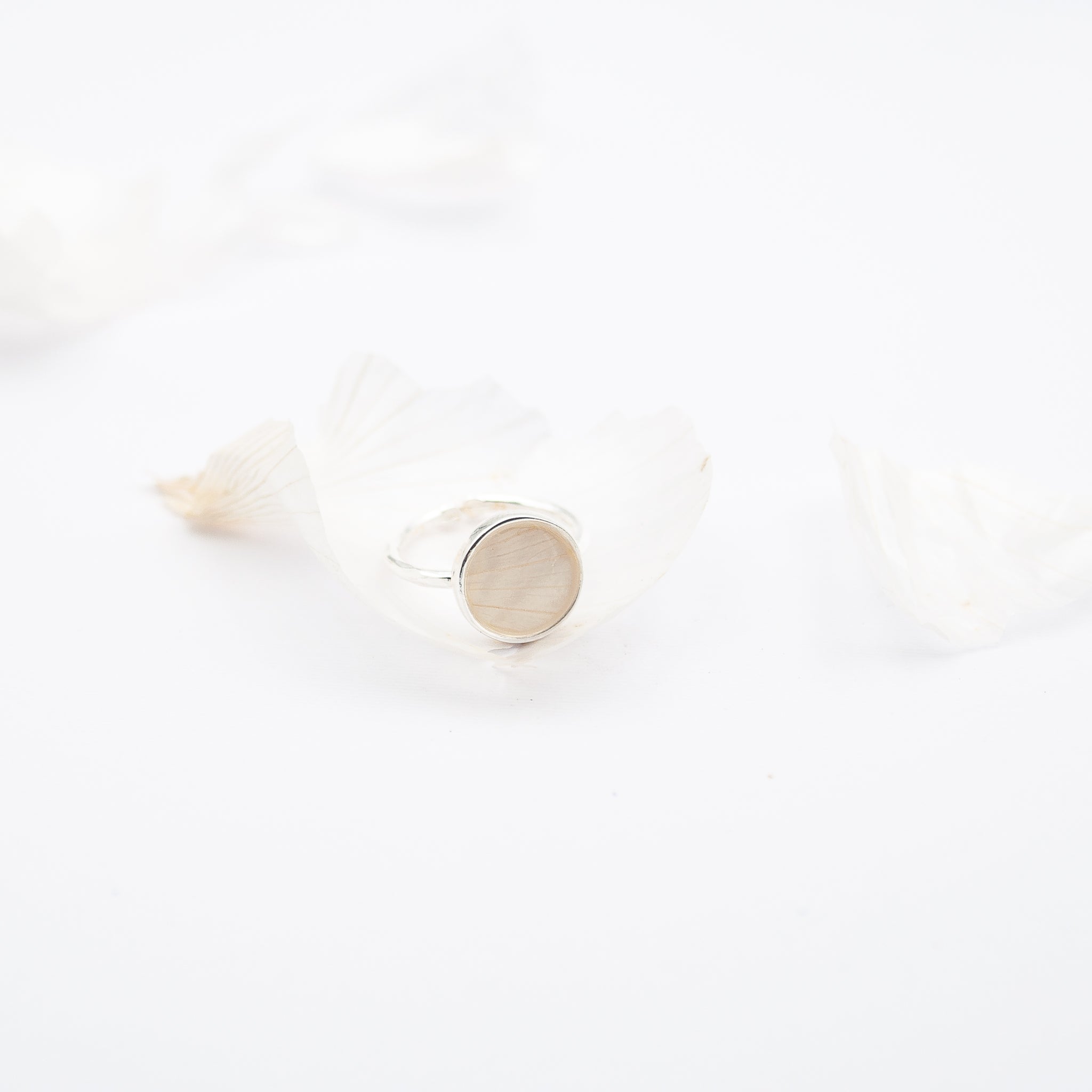 Diametro cabochon: 11 mm – Materiali: resina da belle arti, buccia di cipolla bianca – Metallo: argento 925 - Misura: regolabile