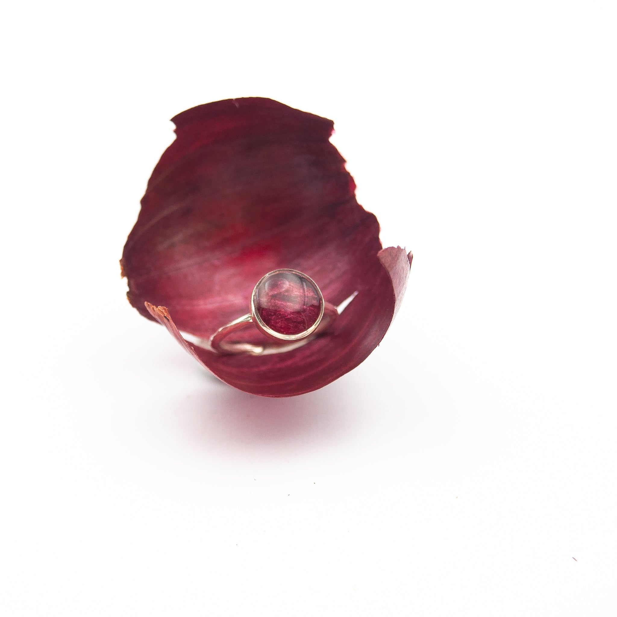Diametro cabochon: 11 mm – Materiali: resina da belle arti, buccia di cipolla rossa – Metallo: argento 925 - Misura: regolabile