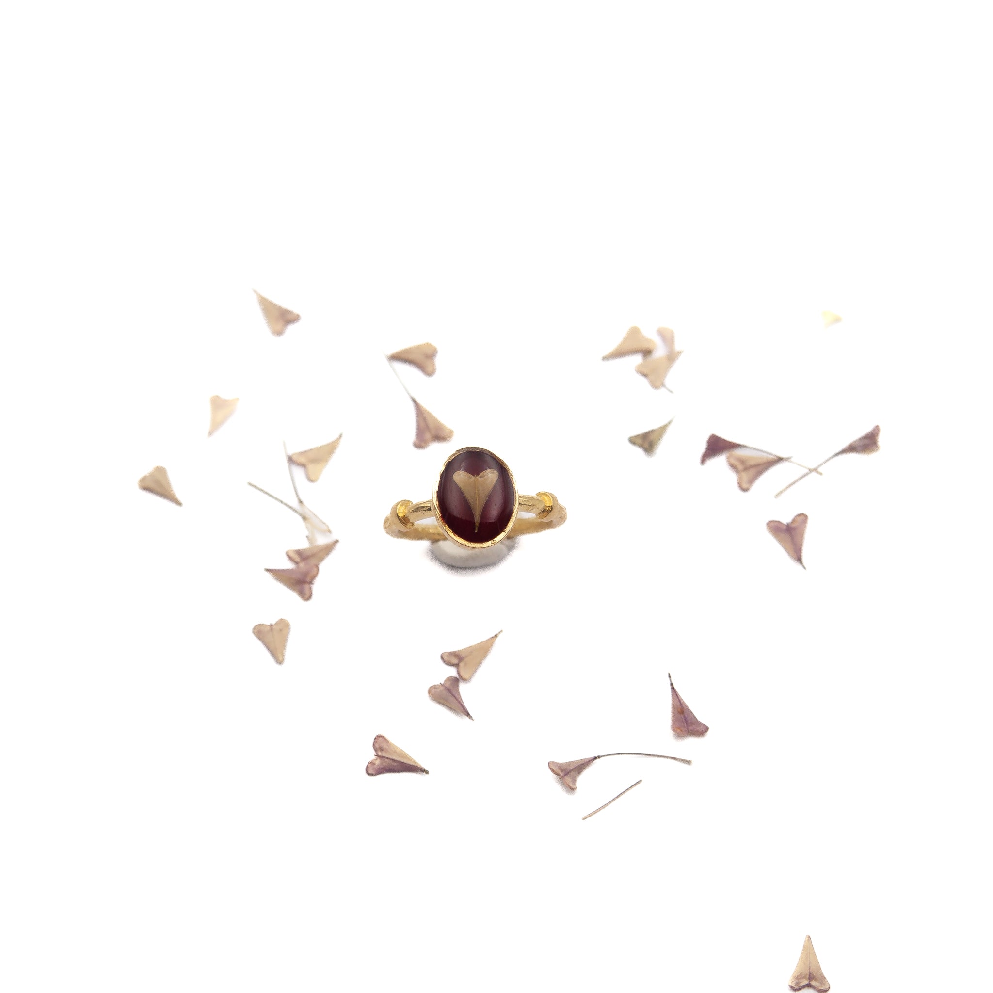 Nota: ogni anello è un pezzo unico, i semi della borsa del pastore possono variare leggermente nella forma e nelle sfumature rispetto alla foto.