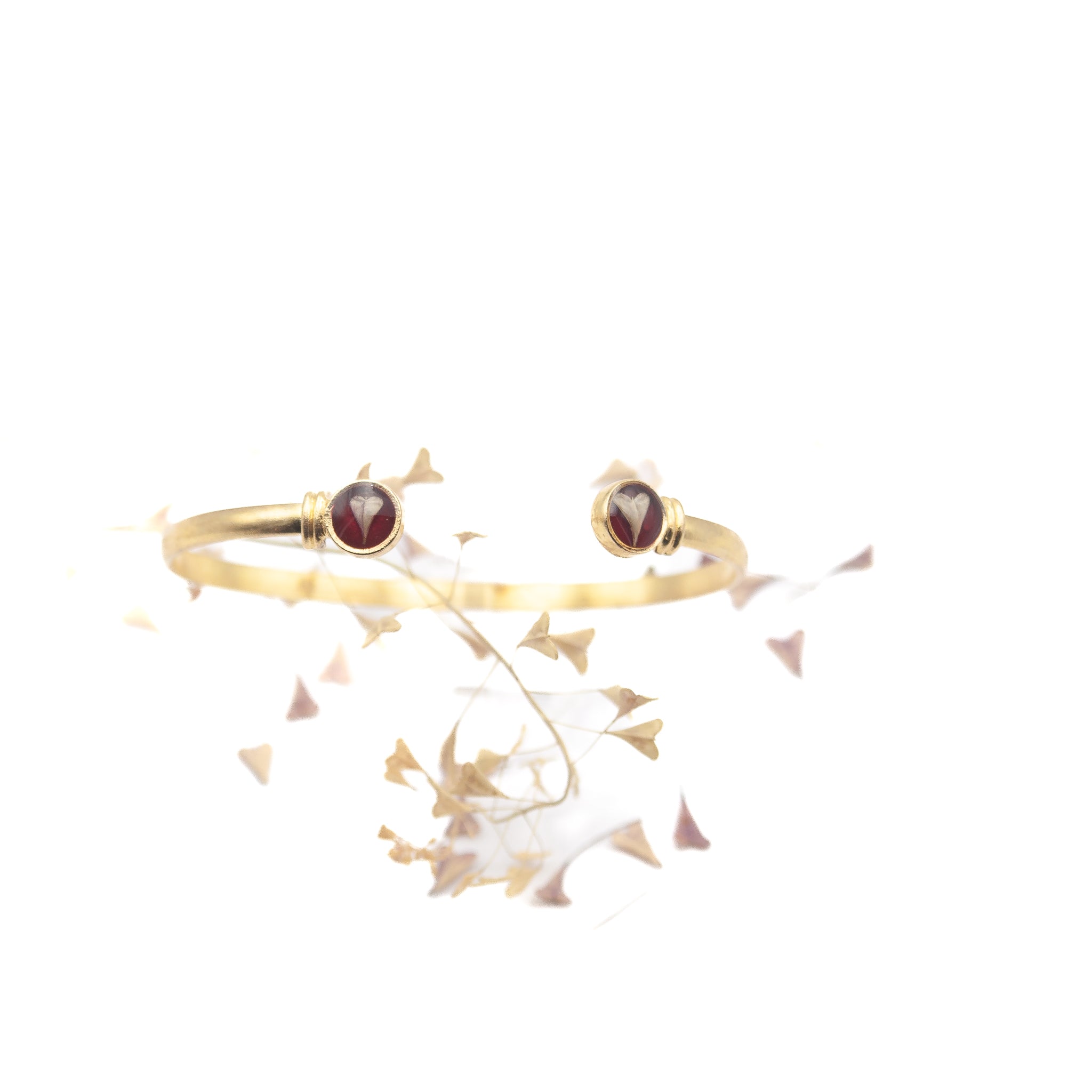 Bracciale rigido in ottone regolabile, con semi di borsa del pastore incastonati su sfondo rosso intenso. I piccoli cuori naturali della pianta primaverile diventano simbolo di delicatezza e rinascita, trasformati in un dettaglio elegante e senza tempo. Un gioiello che custodisce la poesia della natura in una forma minimal e raffinata.