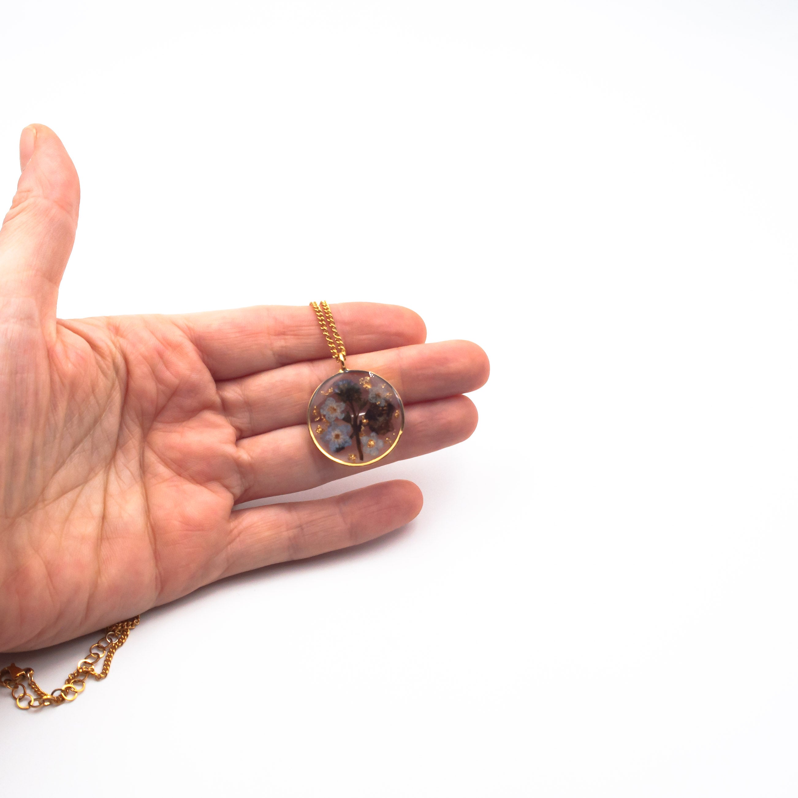 Collana con ciondolo in resina e fiori di non ti scordar di me