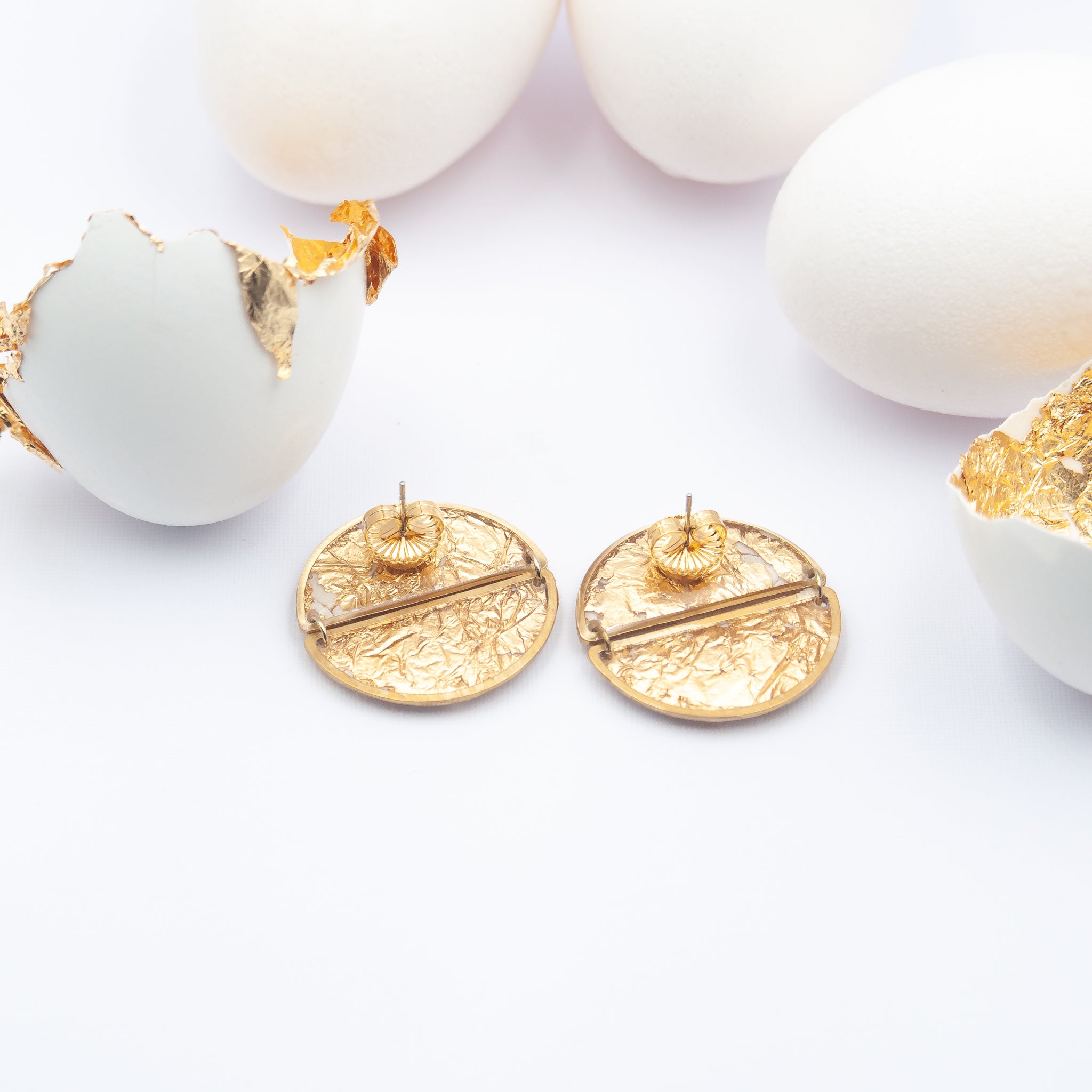 Orecchini da lobo in resina con guscio d'uovo e foglie d'oro